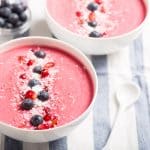 Note: It’s best to try ingredients that a child might be allergic to one at a time instead of blending multiple items together. This is helpful so you can easily identify which food might have caused the allergy. Once a child has individually tried all the ingredients you want to add to a smoothie bowl, you should be safe. Just make sure everything is blended well.