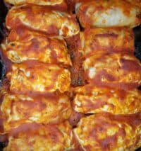 Heat olive oil in a large skillet over medium heat and cook the onions until golden, about 10 min. Add garlic, mushrooms, carrot, green onion, and seasonings. Cook until the veggies are tender, about 8 – 10 minutes. Stir in the brown rice and 1/2 cup of tomato sauce, then remove from heat. Coat the bottom of a 9 x 13 baking dish with a thin layer of tomato sauce.