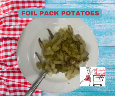 Combine everything on one sheet of foil and top with a second sheet of foil crimp edges so the ingredients do not fall out. Put the grill on medium to medium high for 20 minutes. Flip packet about halfway through. You can cook longer for crunchier potatoes.