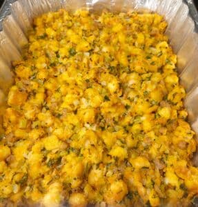 Pour the stuffing into a greased casserole dish and cover with tin foil.