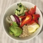 Cocine el arroz de acuerdo con las instrucciones del paquete. Cortar todas las verduras y añadirlas al tazón con el arroz cocido. Prepare un aderezo en un recipiente aparte combinando aceite de oliva, jugo de limón o lima y mostaza Dijon. Mezcle el aderezo en el tazón de arroz y verduras.Añadir sal y pimienta al gusto.Rinde 2 tazones. ¡A disfrutar!